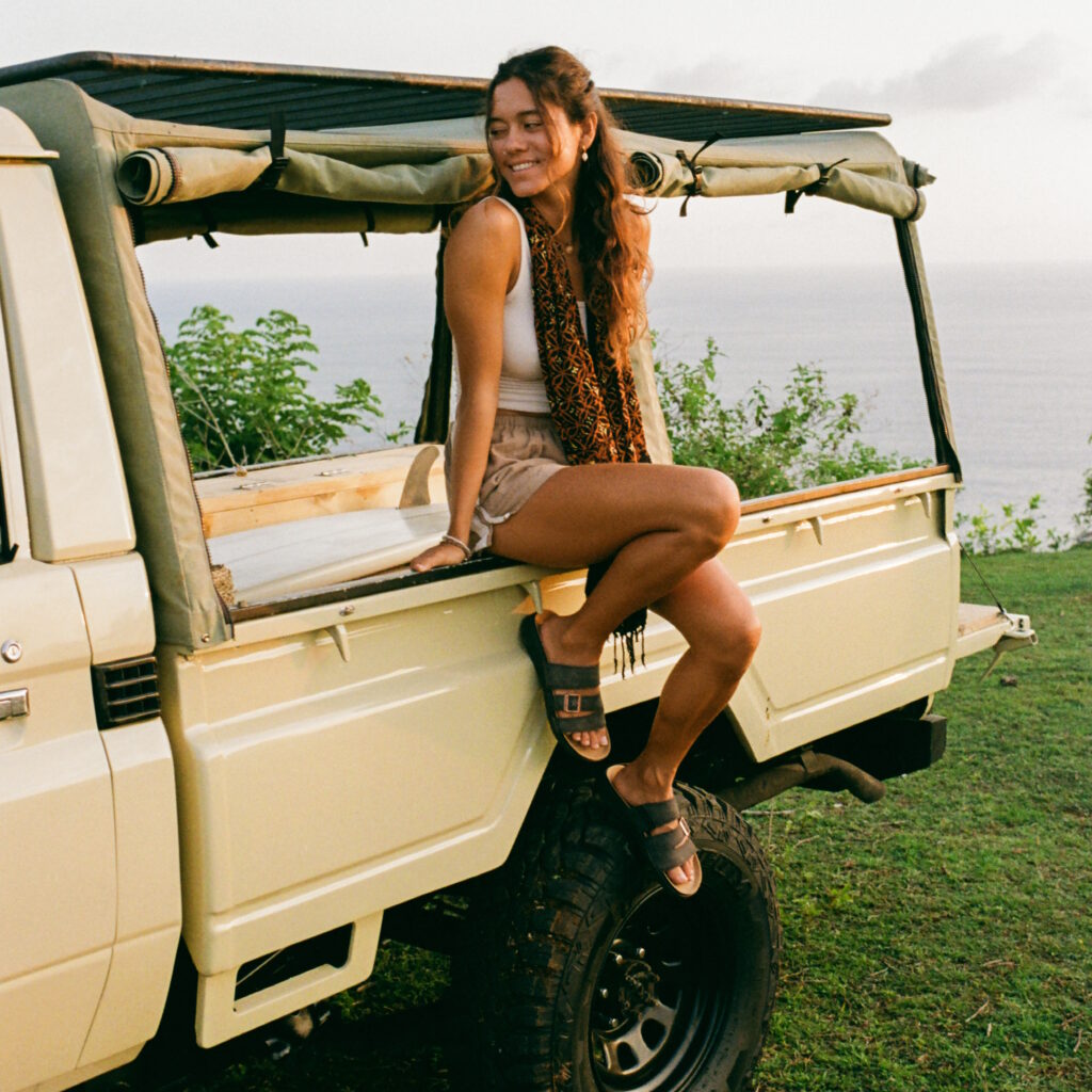 – Trois lanières, élastique à l’entrée du pied, boucle ajustable à la seconde