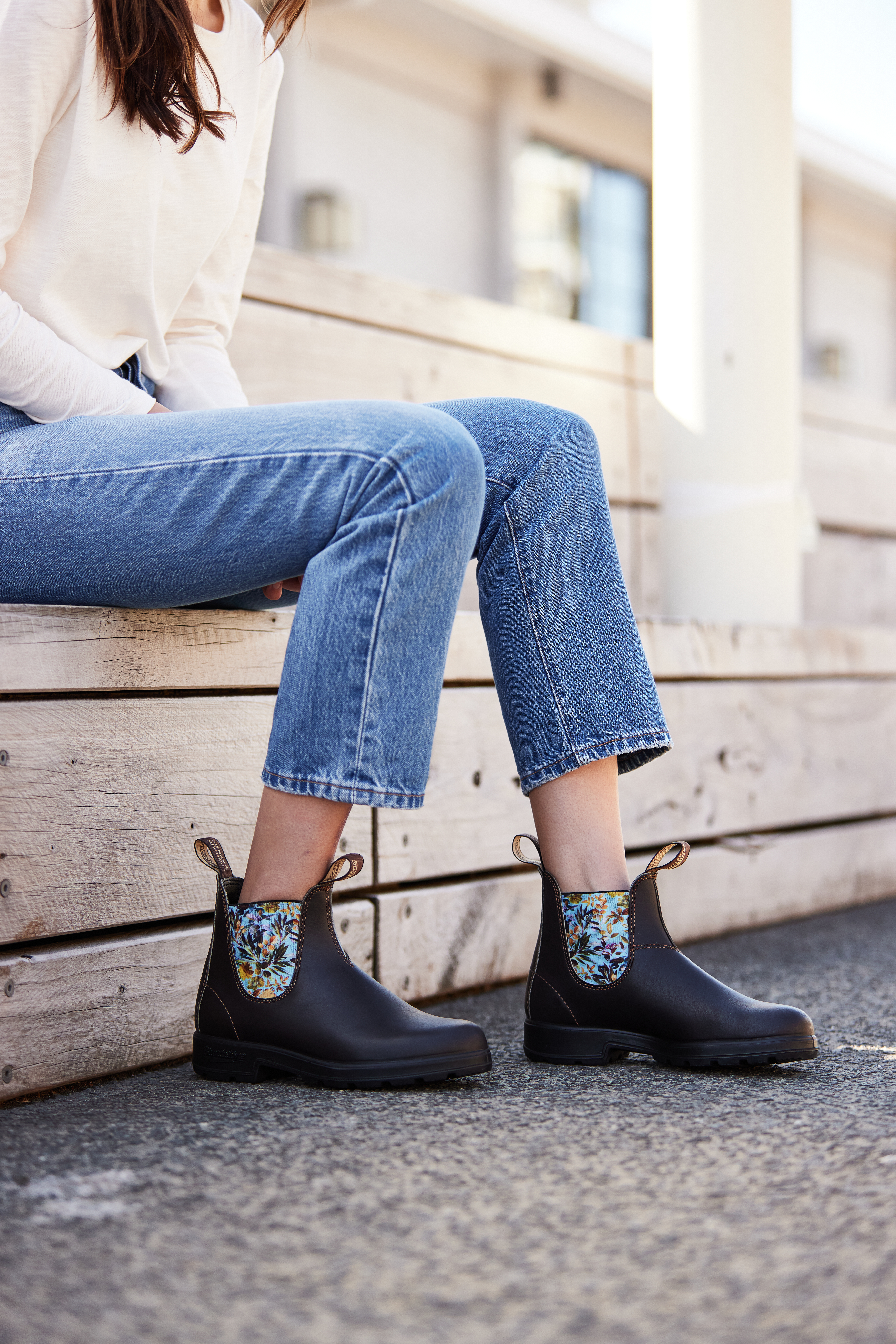 Les Chelsea Boots Original #2204 en cuir premium déperlant marron Stout Brown se démarquent de par leur originalité avec leur élastique imprimé floral.